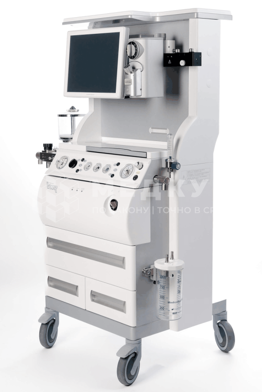 Современный анестезиологический аппарат с цветным сенсорным дисплеем и электронным ротаметром, с системой защиты от гипоксии, предназначенный для работы с такими ингаляционными анестетиками, как Севофлуран, Изофлуран, Галотан, Десфлуран. Электроприводный вентилятор мембранного типа, бесшумен в работе. Осуществляется расширенный мониторинг параметров вентиляции легких, а также их автоматическая оптимизация, мониторинг респираторной механики с возможностью экспорта на внешний накопитель.
