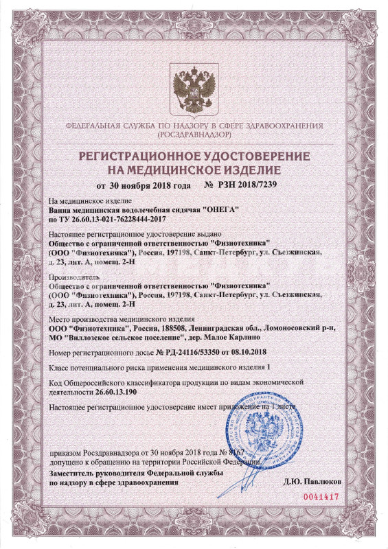 - РУ (регистрационное удостоверение Росздравнадзора)